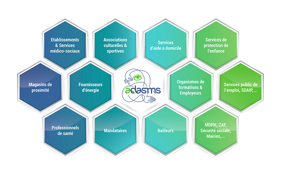 Les services de l’Adasms travaillent également avec un réseau de partenaires : Pôle emploi, Cap emploi 52, Mission locale, Emploi accompagné, Esat Adasms.